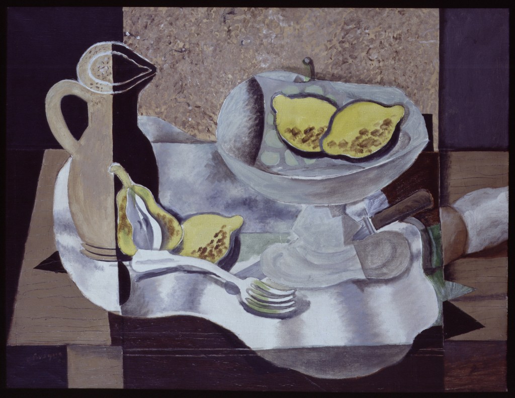 « Still-life has always been the speciality of Braque’s genius. Seldom has painting been used to confer so much enchantment on such ordinary things: loaves of bread, knives, packets of cigarettes, fruit, flowers, and innumerable domestic accessories… Like Chardin before him, Braque takes us into the salon, the kitchen, the bedroom, the dining-room, even into his own studio in pursuit of reality: nothing is too humble to find a place in one of his pictures… So, from the lowliest objects Braque extracts a new poetry as he paints, and our experience of the world becomes fuller and more exciting. If we will look, Braque will teach us to see, and this, after all, is the highest function of the true artist »